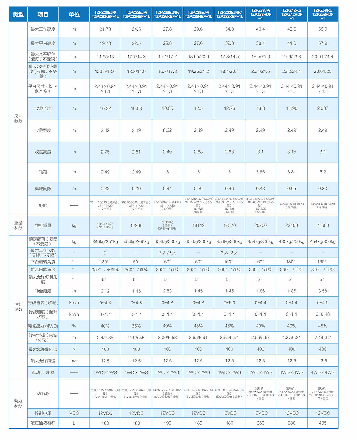• 最大工作高度:14m~58m