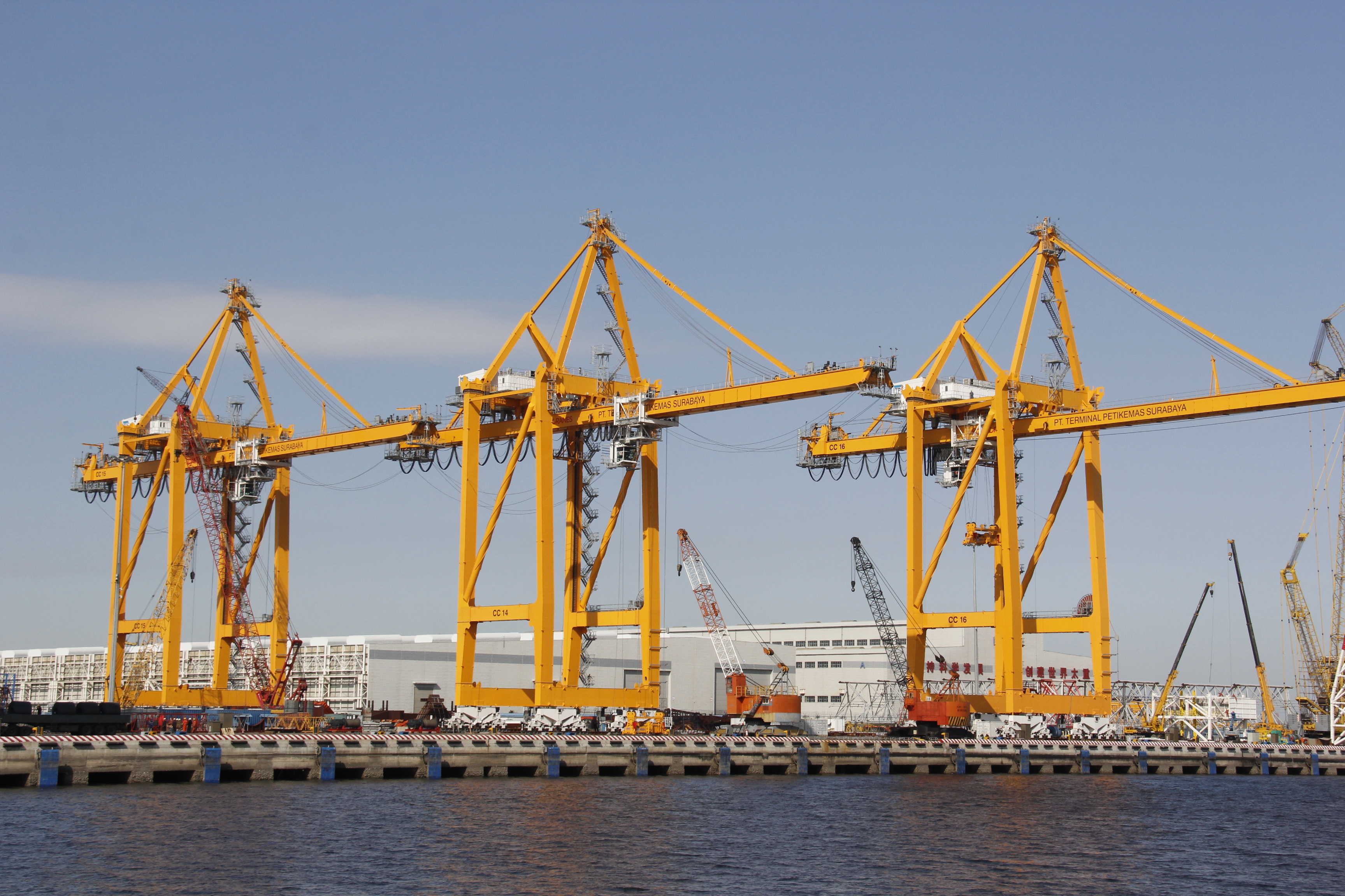 岸邊集裝箱橋式起重機,用于碼頭集裝箱裝卸船作業(yè)的起重機