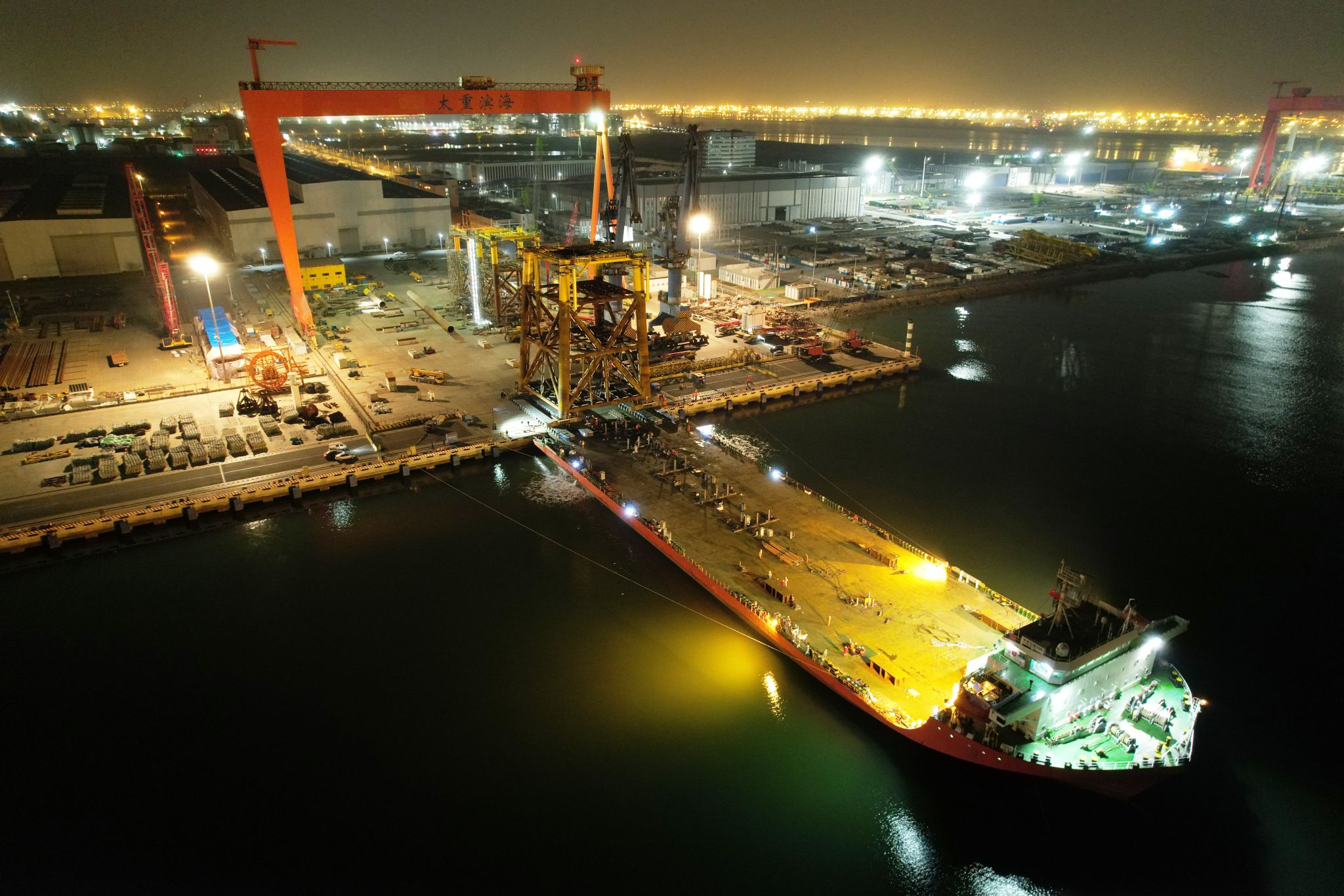 該項(xiàng)目是濱海公司與用戶(hù)簽訂合作協(xié)議后建成的首個(gè)項(xiàng)目,項(xiàng)目組克服氣候等不利影響因素,高效組織、加班加點(diǎn),歷時(shí)100天建造周期順利完成。建成后的導(dǎo)管架在太重碼頭裝船后,將前往我國(guó)渤海遼東灣海域LD5-2北油田進(jìn)行服務(wù),為推動(dòng)海上油氣增儲(chǔ)上產(chǎn)、保障國(guó)家能源安全貢獻(xiàn)太重力量。