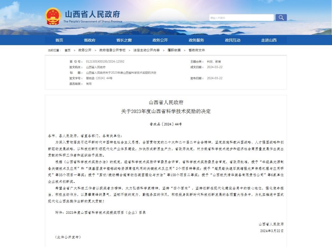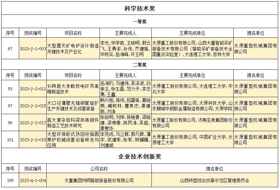 近日,山西省人民政府印發(fā)《關(guān)于2023年度山西省科學(xué)技術(shù)獎勵的決定》,對促進(jìn)山西省科學(xué)技術(shù)進(jìn)步和經(jīng)濟(jì)社會發(fā)展作出突出貢獻(xiàn)的科學(xué)技術(shù)人員和組織給予獎勵。太重集團(tuán)5項(xiàng)成果喜獲山西省科學(xué)技術(shù)獎。太重向明榮獲企業(yè)技術(shù)創(chuàng)新獎。