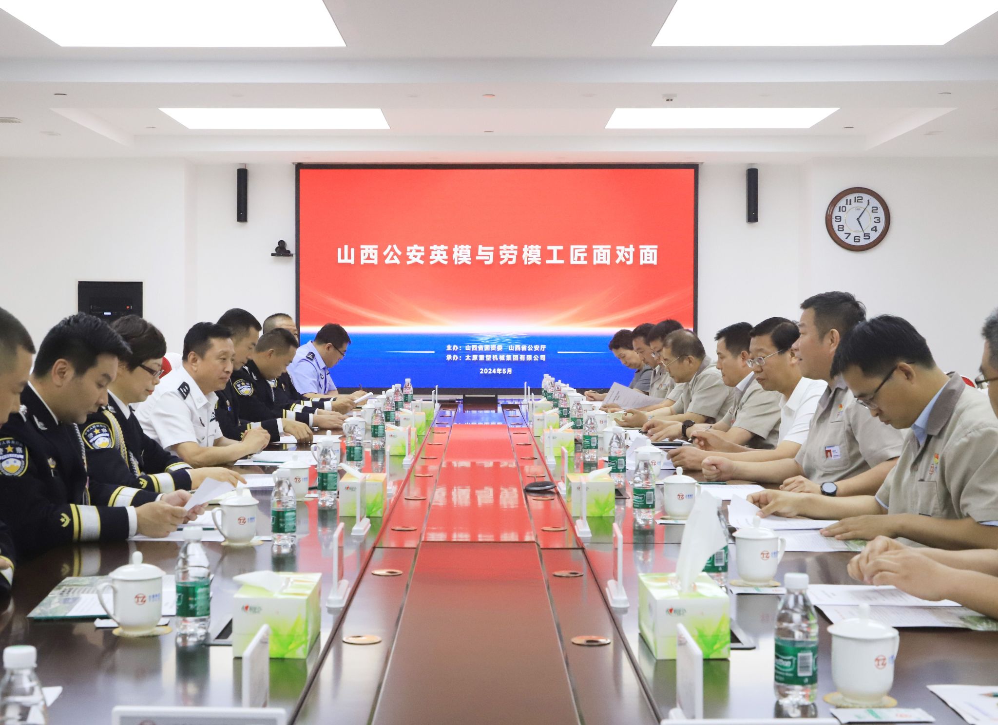 會(huì)后,山西公安英模與太重勞模工匠舉行了面對(duì)面交流會(huì),雙方進(jìn)行了充分的交流發(fā)言,勞模工匠們紛紛表示,聽了各位英模的事跡后非常感動(dòng),第一次真切的了解到公安一線工作的辛苦,對(duì)公安英模們深植于心的人民情懷和敢于開拓創(chuàng)新的精神感到敬佩,向公安英模和一線干警表示崇高的敬意。公安英模也對(duì)太重勞模工匠為中國(guó)裝備制造業(yè)發(fā)展作出的貢獻(xiàn)表示感謝。他們表示,在參觀太重展覽館時(shí),聽到最多的詞就是“第一”、“最大”,無(wú)不體現(xiàn)了太重作為共和國(guó)長(zhǎng)子的信心與底氣,各位勞模工匠為加快推進(jìn)中國(guó)式現(xiàn)代化、發(fā)展新質(zhì)生產(chǎn)力作出了不凡的貢獻(xiàn),是學(xué)習(xí)的榜樣,值得敬佩。