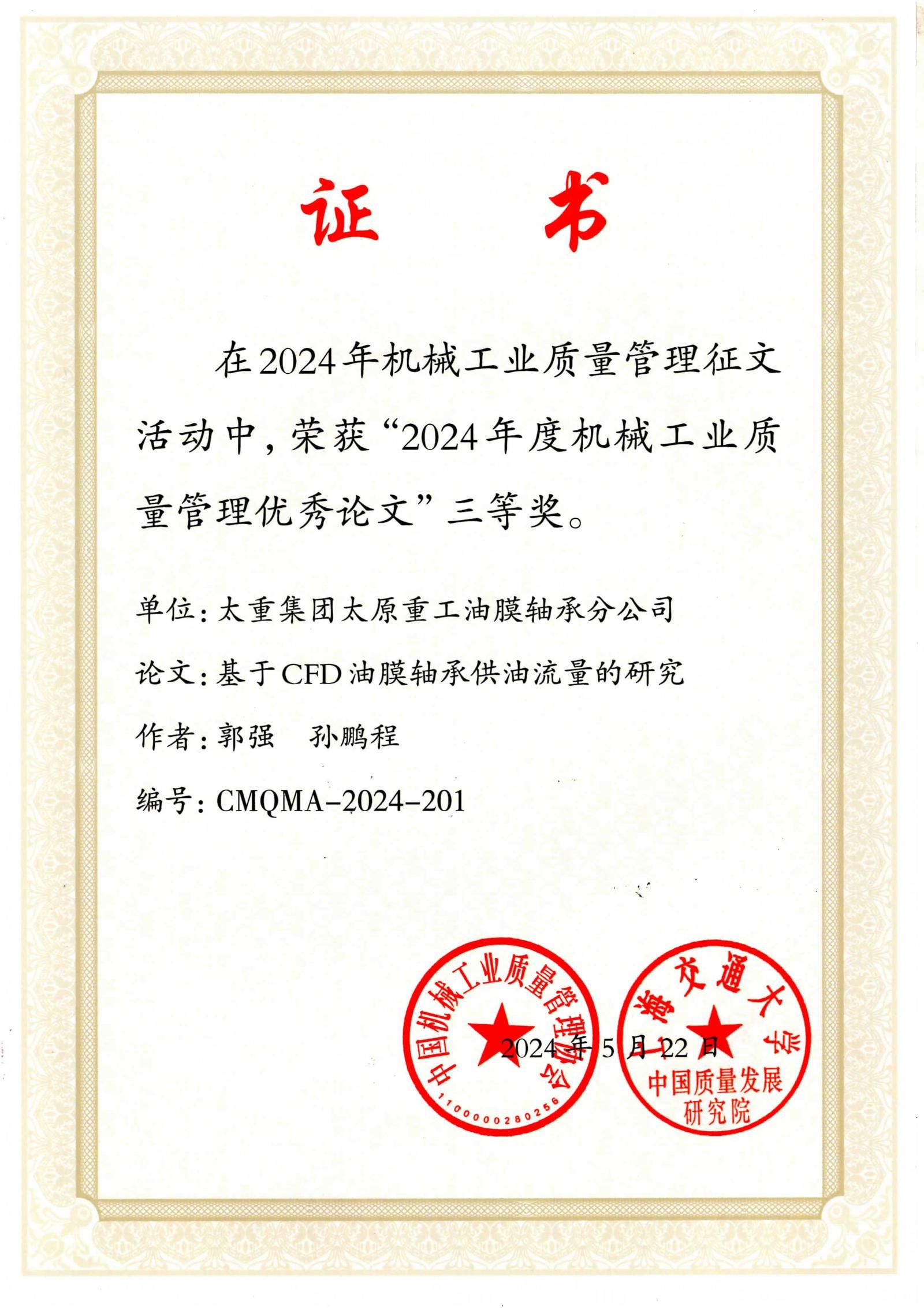 本次優(yōu)秀論文評選由業(yè)內(nèi)知名專家組成評審團,從創(chuàng)新性、實用性、影響力等多個維度進行綜合評價,旨在挖掘并推廣機械工業(yè)質(zhì)量管理領(lǐng)域的前沿理念和成功經(jīng)驗。該獎項申報門檻高、評審標(biāo)準(zhǔn)嚴,代表了行業(yè)領(lǐng)先水平。公司在此次評選中滿載而歸、碩果累累,是太重雄厚質(zhì)量管理能力的有力見證,也折射出太重質(zhì)量工作者潛心鉆研、追求卓越的創(chuàng)新精神。