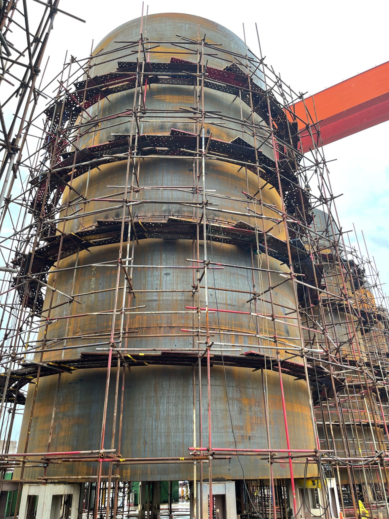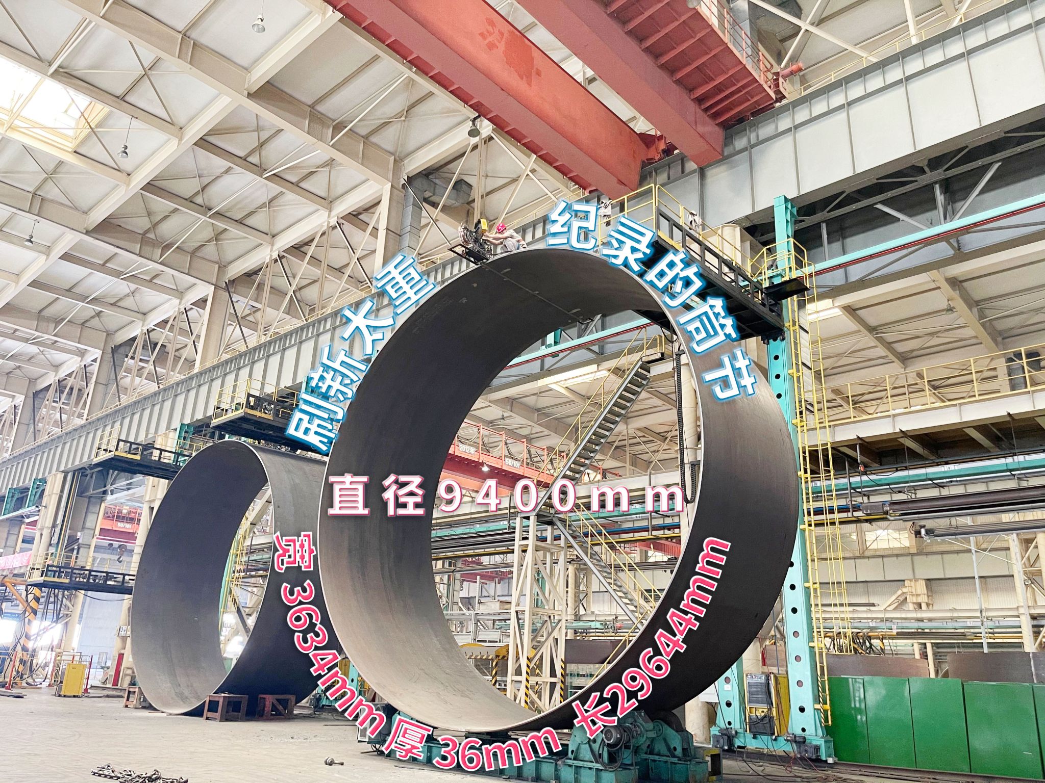 說干就干!兩張鋼板拼接好后,一個新的難題擺在面前:“圈圓”直徑與寬度均超過了卷板機(jī)生產(chǎn)加工的極限。面對困難,濱海公司精心籌劃、精密安排,多次進(jìn)行技術(shù)及安全評估,決定在充分做好安全保障的前提下,對卷板機(jī)進(jìn)行科學(xué)改進(jìn),使其完美適配此次生產(chǎn)加工任務(wù),最終將焊接時間縮短了60%以上,整體“圈圓”進(jìn)度較生產(chǎn)計(jì)劃要求大大提前,9.4米超大直徑筒節(jié)就此在太重誕生!刷新筒節(jié)直徑紀(jì)錄的背后,是濱海公司對高質(zhì)量高效率的不懈追求,不僅為公司承攬其他相關(guān)業(yè)務(wù)積累了寶貴經(jīng)驗(yàn),也再一次用事實(shí)展現(xiàn)出太重出眾的制造實(shí)力。未來,公司將乘勢而上、聚智聚力,進(jìn)一步增強(qiáng)港機(jī)、海工和化工產(chǎn)品生產(chǎn)制造本領(lǐng),為更多領(lǐng)域和行業(yè)的高質(zhì)量發(fā)展貢獻(xiàn)太重的裝備力量。
