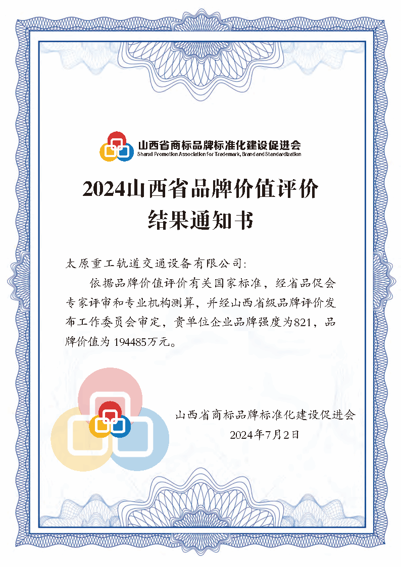 山西省品牌價(jià)值評(píng)價(jià)信息發(fā)布 太重軌道公司成功上榜