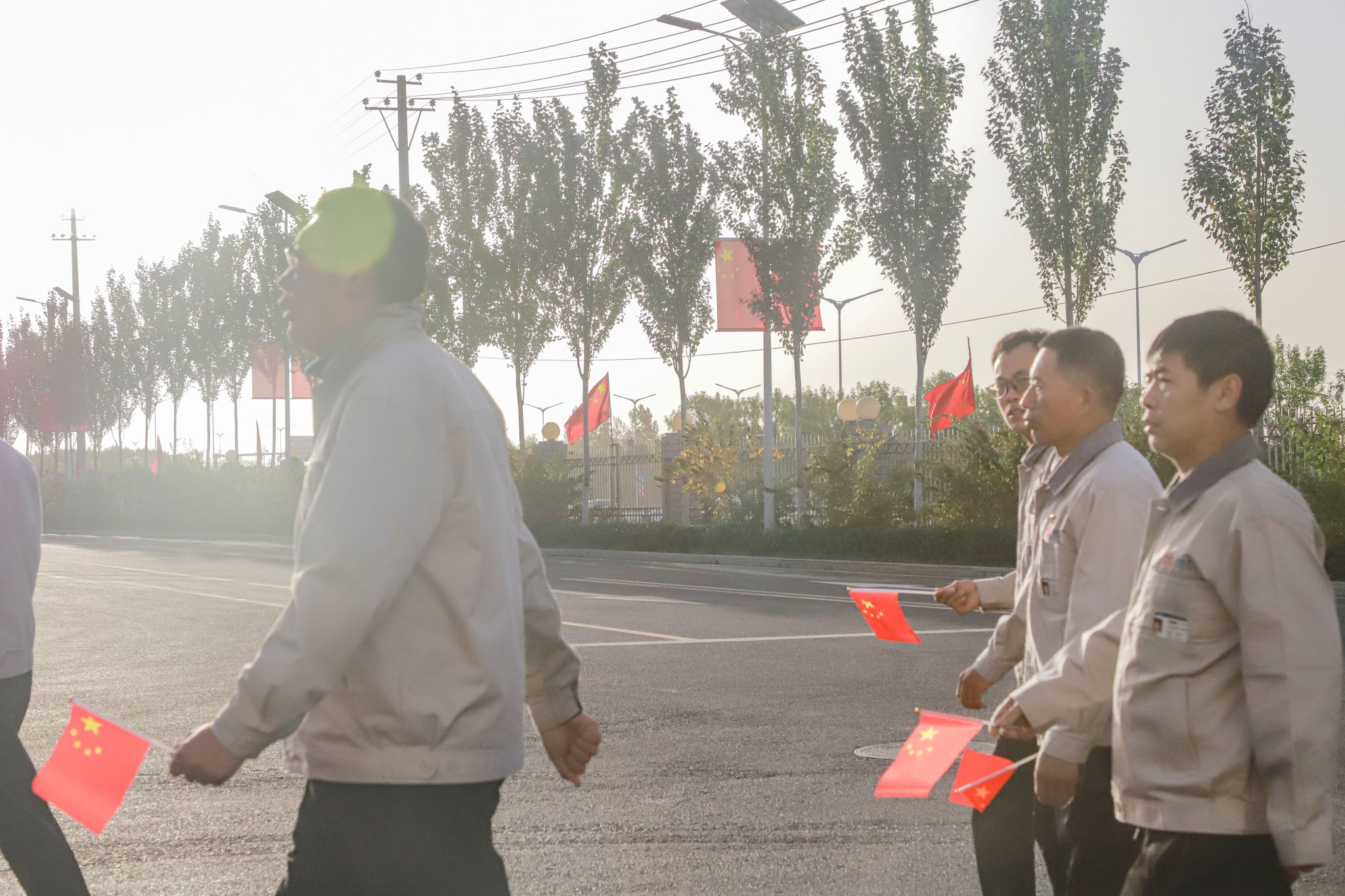 一場秋雨過后,十里太重產(chǎn)業(yè)新城的天氣已有了一絲涼意,但職工們熱情不減?!俺霭l(fā)!”,隨著一聲令下,大家迎著晨光,邁著矯健的步伐,揮舞國旗從運(yùn)營中心出發(fā),沿中央大道穿越整個(gè)新園區(qū)。