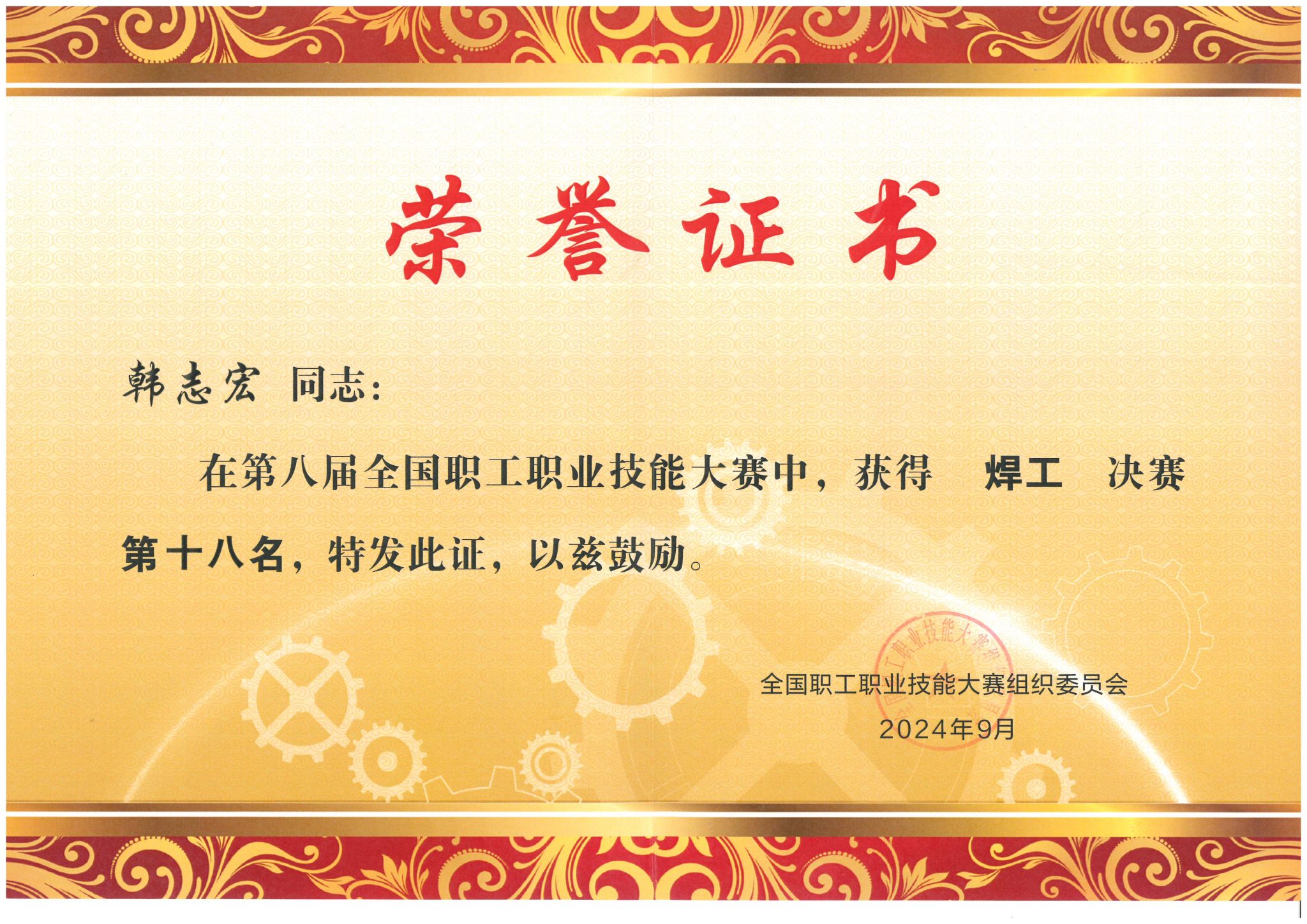 山西省第八屆職工職業(yè)技能大賽總結(jié)大會(huì)取得優(yōu)異成績(jī)的選手、教練組和組織單位2項(xiàng)集體獎(jiǎng)、3項(xiàng)個(gè)人獎(jiǎng)公司代表太原市榮獲焊工團(tuán)體第一名