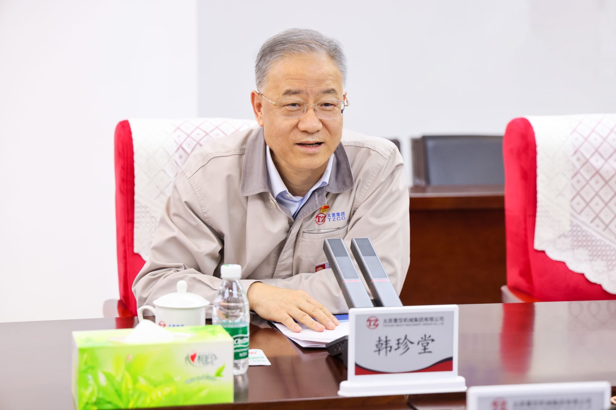 韓珍堂對(duì)高峰一行的到來表示熱烈歡迎,并詳細(xì)介紹了太重的發(fā)展歷程、企業(yè)文化以及未來發(fā)展規(guī)劃。他說,太重作為“共和國(guó)長(zhǎng)子”,肩負(fù)大國(guó)重器的使命擔(dān)當(dāng),與祖國(guó)同向同行。轉(zhuǎn)型升級(jí)以來,太重開啟了氣勢(shì)如虹的改革、創(chuàng)新和發(fā)展,進(jìn)入了追趕超越的新階段,正逐步向創(chuàng)造引領(lǐng)不斷前行。近年來,太重持續(xù)加大研發(fā)投入,構(gòu)建起“一重點(diǎn)、一中心、多基地”技術(shù)研發(fā)體系,創(chuàng)新優(yōu)勢(shì)不斷轉(zhuǎn)化為發(fā)展勝勢(shì),以“高端化、智能化、綠色化、國(guó)產(chǎn)化”為產(chǎn)品定位,不斷推陳出新,越來越多的用戶用上了國(guó)產(chǎn)化精品。同時(shí),太重堅(jiān)持全球化戰(zhàn)略和國(guó)際化視野,深入推進(jìn)國(guó)內(nèi)外重點(diǎn)區(qū)域公司和維護(hù)中心建設(shè),推動(dòng)太重品牌揚(yáng)帆出海。未來,希望能與太鋼進(jìn)一步開展多層次、寬領(lǐng)域合作,充分利用行業(yè)領(lǐng)先技術(shù)和地域優(yōu)勢(shì),“一南一北”協(xié)同配合,深度合作推動(dòng)山西制造業(yè)高質(zhì)量發(fā)展,為譜寫中國(guó)式現(xiàn)代化山西篇章作出更大貢獻(xiàn)。