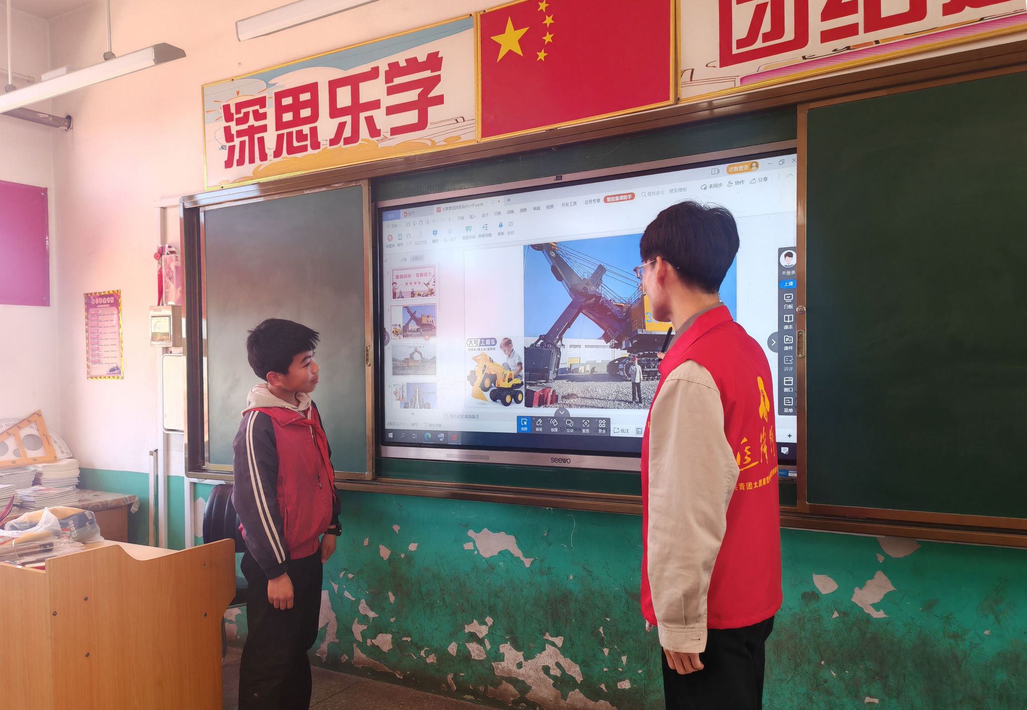 在妙趣橫生的科普課堂上,青年志愿者以動(dòng)畫(huà)形式向?qū)W生展示太重大型礦用挖掘機(jī)等“國(guó)之重器”,太重AI數(shù)智人還用童言童語(yǔ)講述智能裝備的“超級(jí)輪胎”與“智慧大腦”,點(diǎn)燃孩子們的科技熱情?!疤珔柡α?,這就和我心目中的‘超級(jí)英雄’一樣!”學(xué)生稚嫩的話語(yǔ)里,充滿著贊嘆?!?2秒一個(gè)車(chē)輪”“8分48秒一臺(tái)挖掘機(jī)”“一鍵煉焦”……青年志愿者們用生動(dòng)的事例串起太重人勇攀高峰的優(yōu)異成績(jī),將這份記憶帶給新時(shí)代少年。