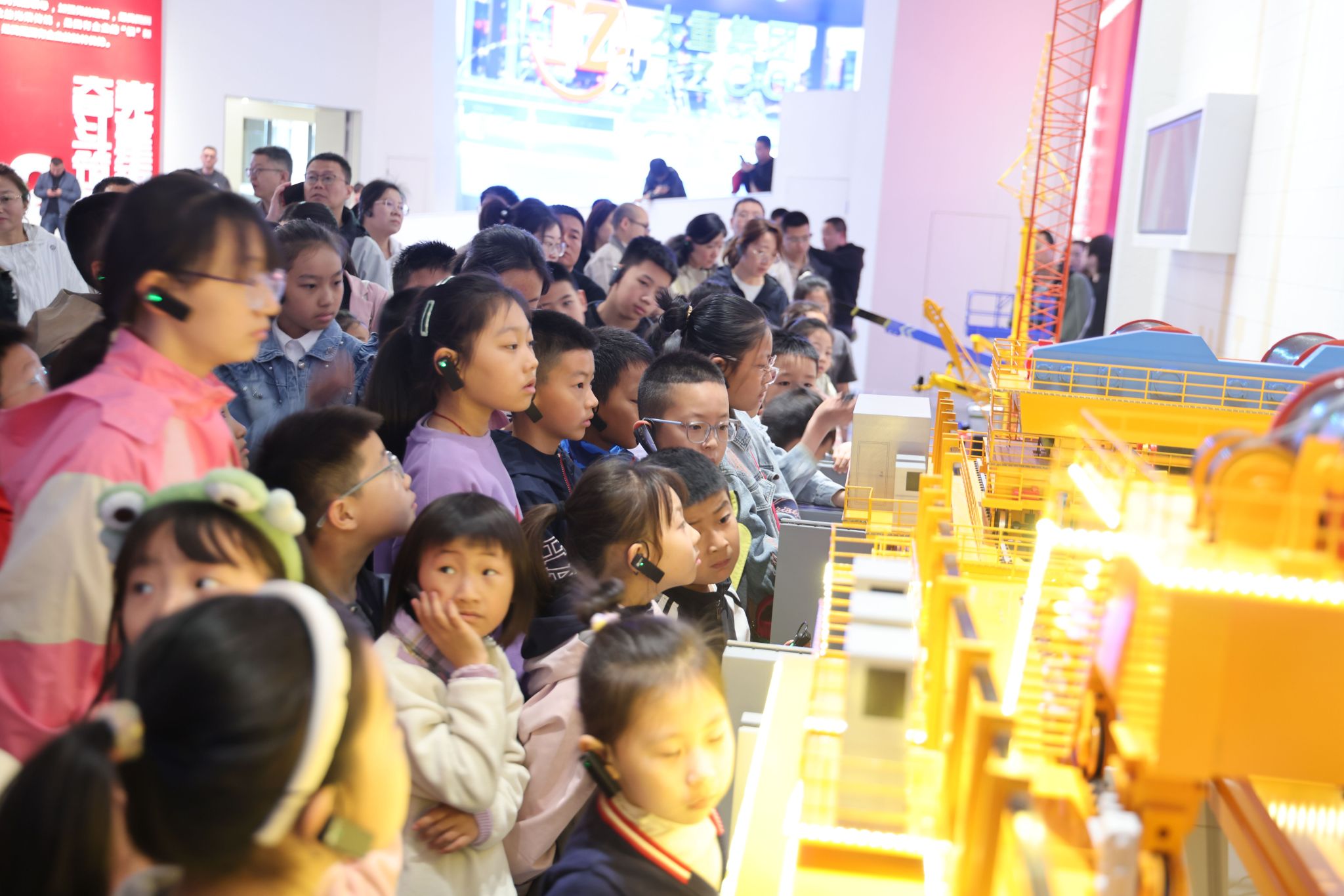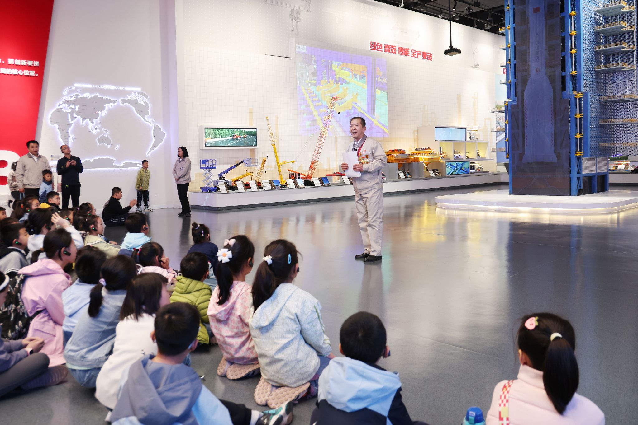 活動伊始,孩子們跟隨講解員走進公司展覽中心,從珍貴的歷史手稿到航天發(fā)射塔架模型,再到各種高端化、智能化裝備,琳瑯滿目的裝備讓孩子們應接不暇、直呼過癮。當智能無人叉車駛出,將其運載的模型緩緩呈現到大家眼前,孩子們無不驚嘆:爸爸媽媽的公司這么牛!