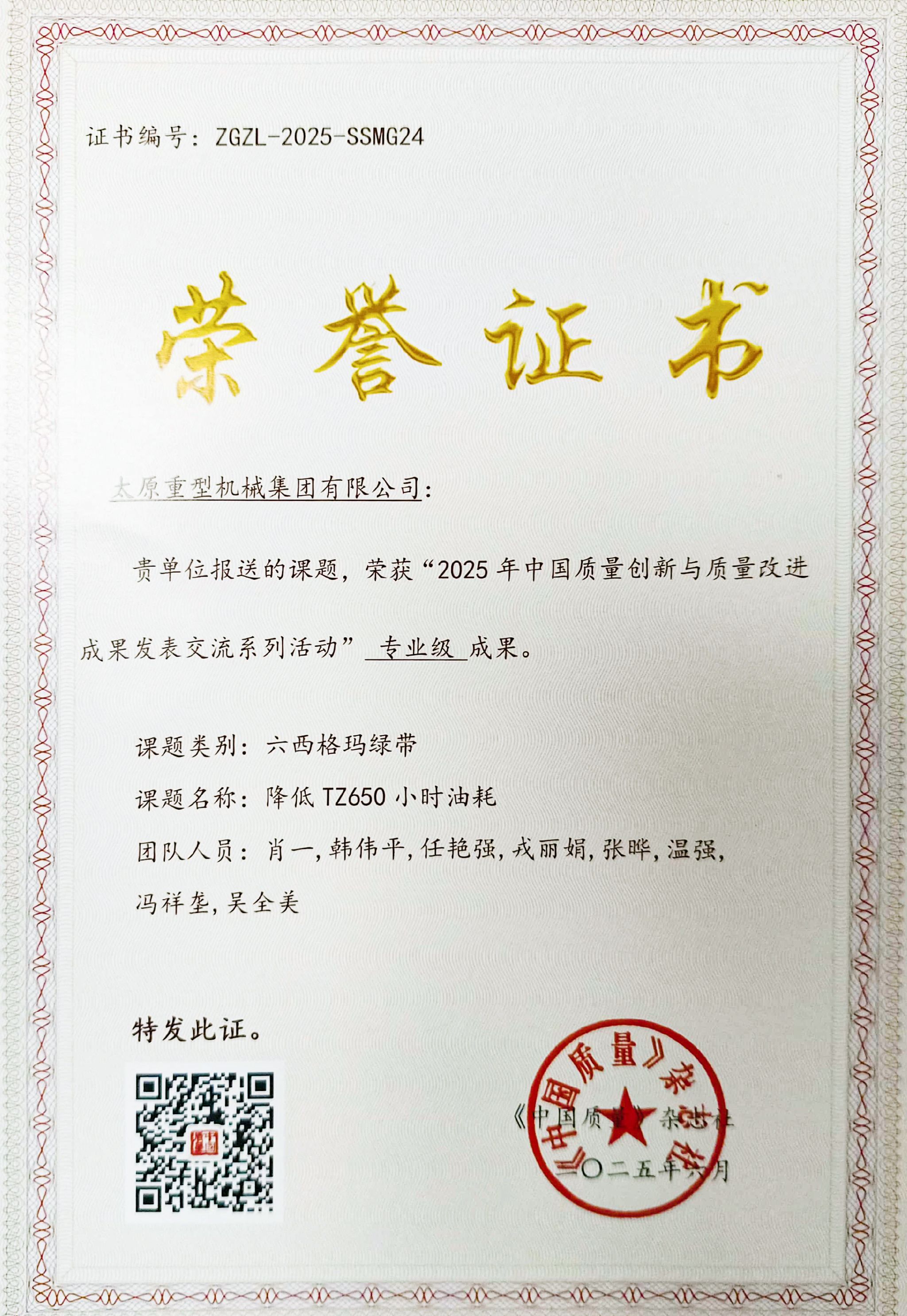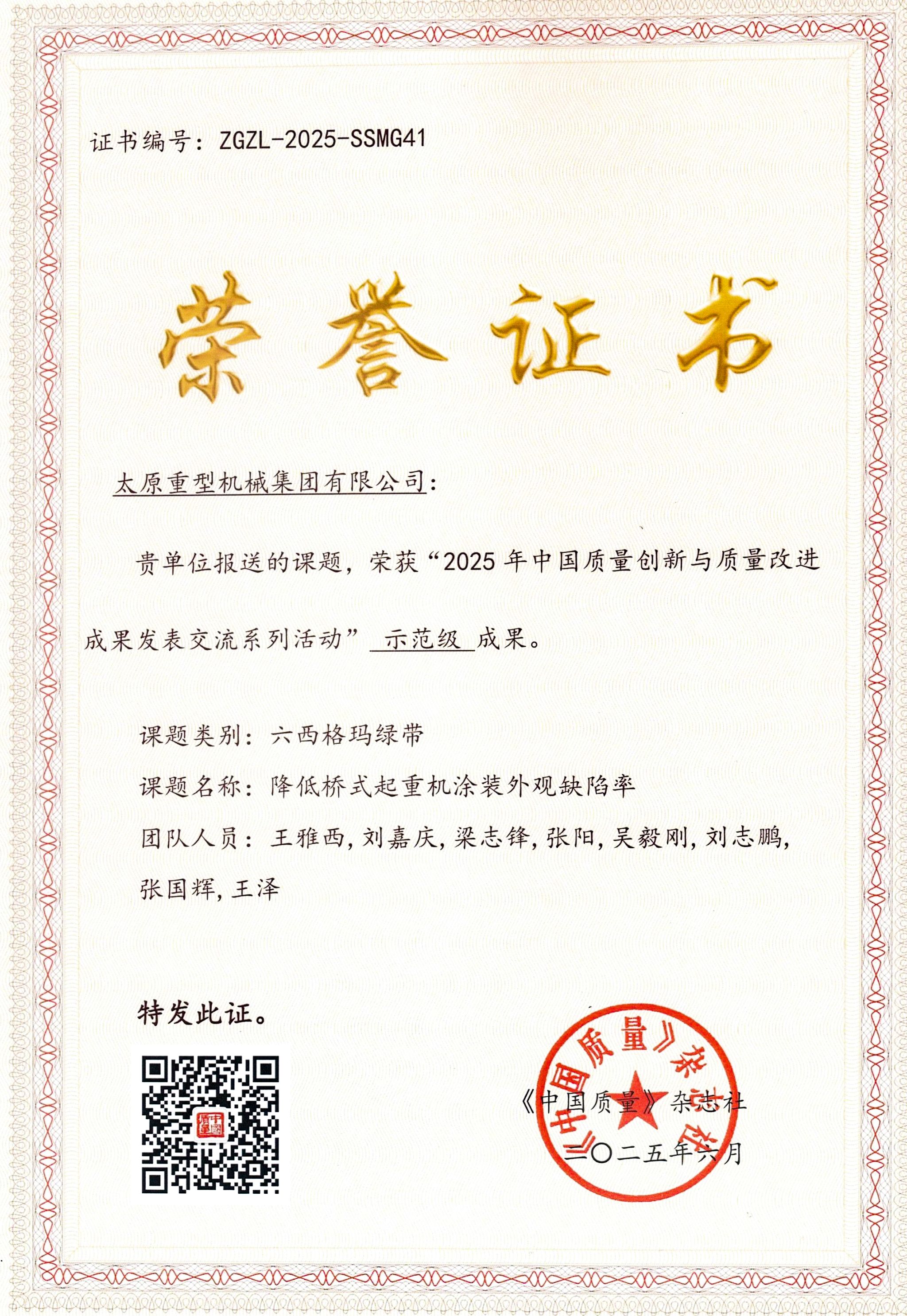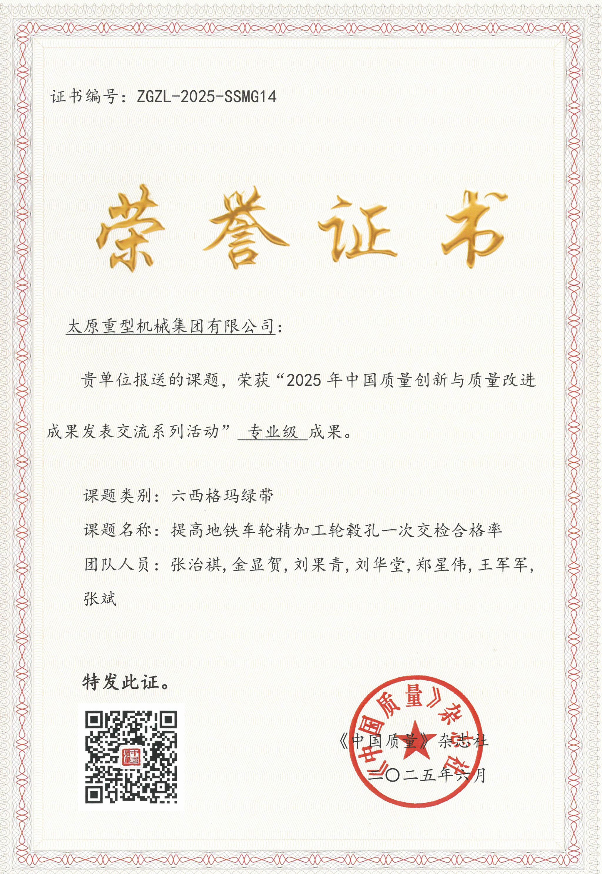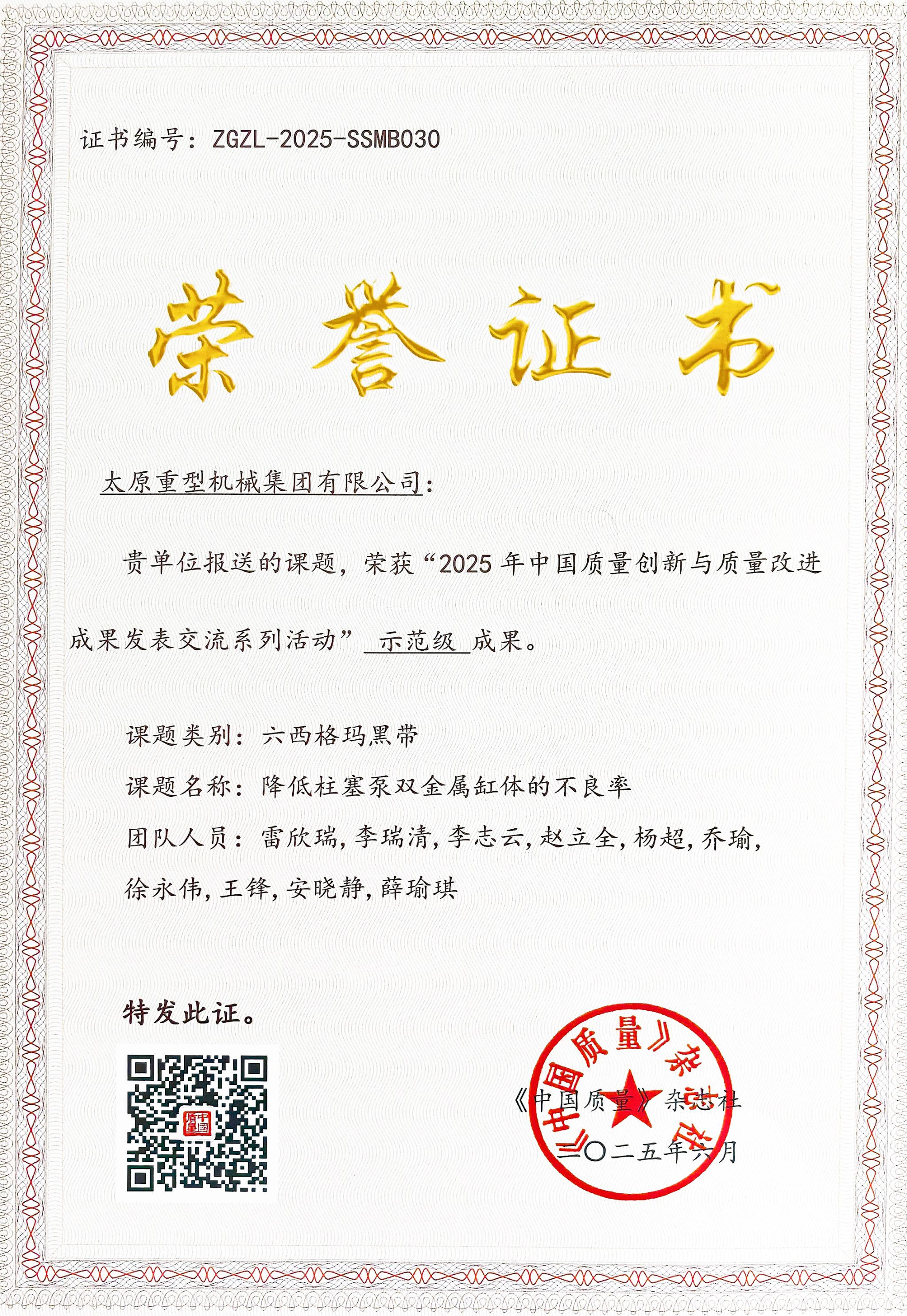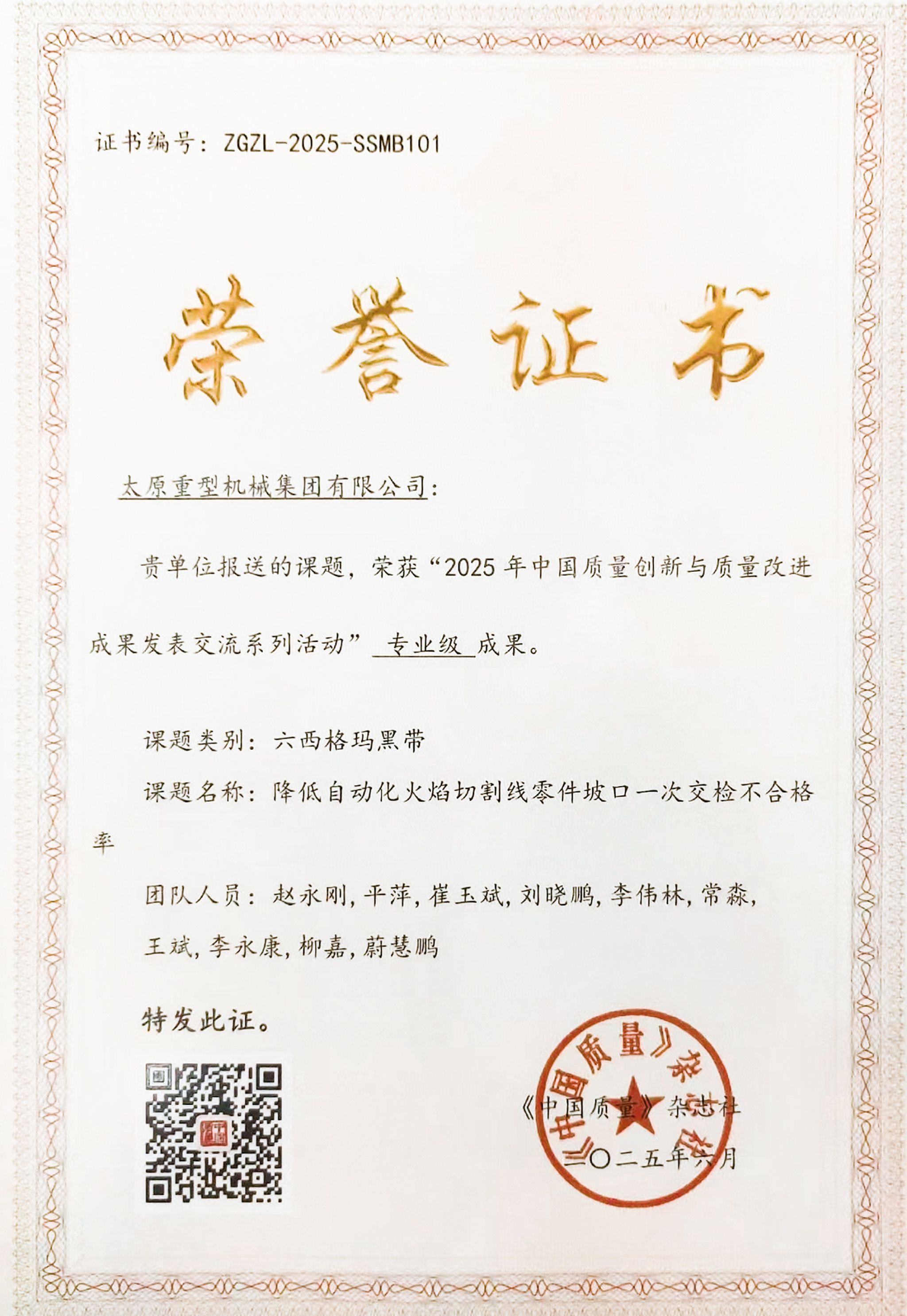 這份成績源自持續(xù)的質(zhì)量管理投入。在中國質(zhì)量協(xié)會《中國質(zhì)量》雜志社組織的“2025年中國質(zhì)量創(chuàng)新與質(zhì)量改進(jìn)成果發(fā)表交流系列活動”中,太重報(bào)送的6項(xiàng)六西格瑪成果憑借突出的技術(shù)創(chuàng)新性和實(shí)際效益脫穎而出,成功斬獲“示范級”“專業(yè)級”成果獎(jiǎng)項(xiàng),這也是太重連續(xù)第二年在該權(quán)威活動中榮獲獎(jiǎng)項(xiàng)。