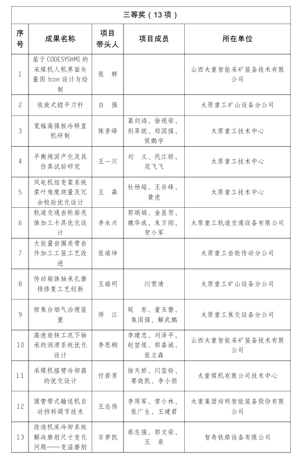 近日,2025年全省“五小”創(chuàng)新大賽及2025年全市“五小”創(chuàng)新大賽獲獎名單相繼揭曉,集團公司申報的優(yōu)秀成果取得了可喜成績。其中,榮獲山西省二等獎8項、三等獎12項;榮獲太原市一等獎4項、二等獎8項、三等獎13項、優(yōu)秀獎12項。太原重型機械集團有限公司獲2025年全省“五小”創(chuàng)新大賽優(yōu)勝單位。太原重型機械集團有限公司工會、太重煤機有限公司工會獲2025年全市“五小”創(chuàng)新大賽優(yōu)秀組織單位,太原重工起重機分公司、太原重工技術(shù)中心獲2025年全市“五小”創(chuàng)新大賽優(yōu)勝單位。一批技術(shù)創(chuàng)新 降本增效的