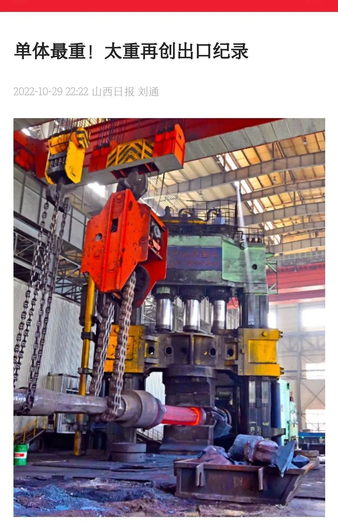 近日,山西日報以《單體最重!太重再創(chuàng)出口紀(jì)錄》為題,對太重集團(tuán)高端裝備制造領(lǐng)域的新突破進(jìn)行報道。太重集團(tuán)堅持以“精細(xì)化、國際化、高端化、智能化”為方向,以智能制造、科技創(chuàng)新為動能,在轉(zhuǎn)型升級中展現(xiàn)新作為,積極履行好高端裝備制造產(chǎn)業(yè)鏈“鏈主”企業(yè)責(zé)任,持續(xù)加大關(guān)鍵核心技術(shù)攻關(guān)力度,為公司建設(shè)具有國際一流競爭力的現(xiàn)代智能裝備制造企業(yè)蓄勢賦能。