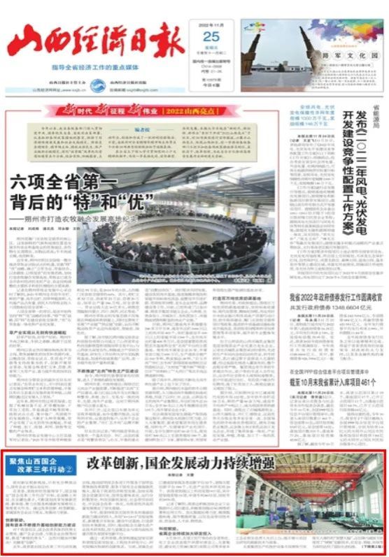 11月25日,山西經(jīng)濟(jì)日?qǐng)?bào)頭版《聚焦山西國(guó)企改革三年行動(dòng)》專欄,刊發(fā)文章《改革創(chuàng)新,國(guó)企發(fā)展動(dòng)力持續(xù)增強(qiáng)》,報(bào)道太重集團(tuán)圍繞“雙碳”目標(biāo)要求,以“前瞻性、可靠性、先進(jìn)性”和“國(guó)產(chǎn)化、智能化、人性化、綠色化、輕量化”為目標(biāo),強(qiáng)化技術(shù)攻關(guān)力度,不斷提高焦化設(shè)備的環(huán)保技術(shù)、工藝、裝備水平,為我國(guó)焦化行業(yè)的轉(zhuǎn)型升級(jí)和持續(xù)發(fā)展奠定了基礎(chǔ),為助力國(guó)家實(shí)現(xiàn)“雙碳”目標(biāo)展現(xiàn)了國(guó)企擔(dān)當(dāng)。下面對(duì)太重集團(tuán)相關(guān)內(nèi)容進(jìn)行轉(zhuǎn)載。