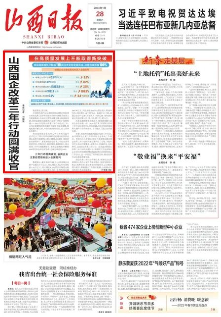 今日,山西日?qǐng)?bào)頭版頭條刊發(fā)《山西國(guó)企改革三年行動(dòng)圓滿收官》文章,報(bào)道國(guó)企改革三年行動(dòng)中山西在重要領(lǐng)域和關(guān)鍵環(huán)節(jié)取得的顯著成績(jī)。其中,太重集團(tuán)以務(wù)實(shí)舉措、扎實(shí)成效引起廣泛關(guān)注。深化改革以來(lái),公司深入實(shí)施科技創(chuàng)新引領(lǐng),加強(qiáng)人才隊(duì)伍建設(shè),聚焦關(guān)鍵核心技術(shù),以平臺(tái)培育技術(shù),以技術(shù)服務(wù)產(chǎn)業(yè),勠力同心、攻堅(jiān)克難,圓滿完成國(guó)企改革三年行動(dòng)各項(xiàng)任務(wù),交出一份合格答卷。下面對(duì)太重集團(tuán)相關(guān)內(nèi)容進(jìn)行轉(zhuǎn)載。