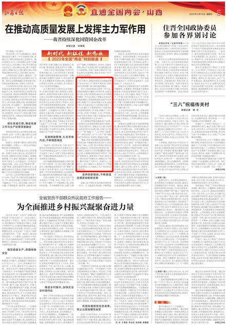 今日,山西日?qǐng)?bào)【新時(shí)代 新征程 新偉業(yè)——2023年全國(guó)兩會(huì)特別報(bào)道】專欄,刊發(fā)了《在推動(dòng)高質(zhì)量發(fā)展上發(fā)揮主力軍作用 ——我省持續(xù)深化國(guó)資國(guó)企改革》文章,深入報(bào)道了太重集團(tuán)在推動(dòng)我省高質(zhì)量發(fā)展中的突出成效 。近年來(lái),太重集團(tuán)苦練內(nèi)功、提質(zhì)增效,扎實(shí)推進(jìn)國(guó)企改革,在智能制造、創(chuàng)新驅(qū)動(dòng)、人才體制機(jī)制改革等方面亮點(diǎn)頻出、成效顯著,成為推動(dòng)全省高質(zhì)量發(fā)展的重要力量。