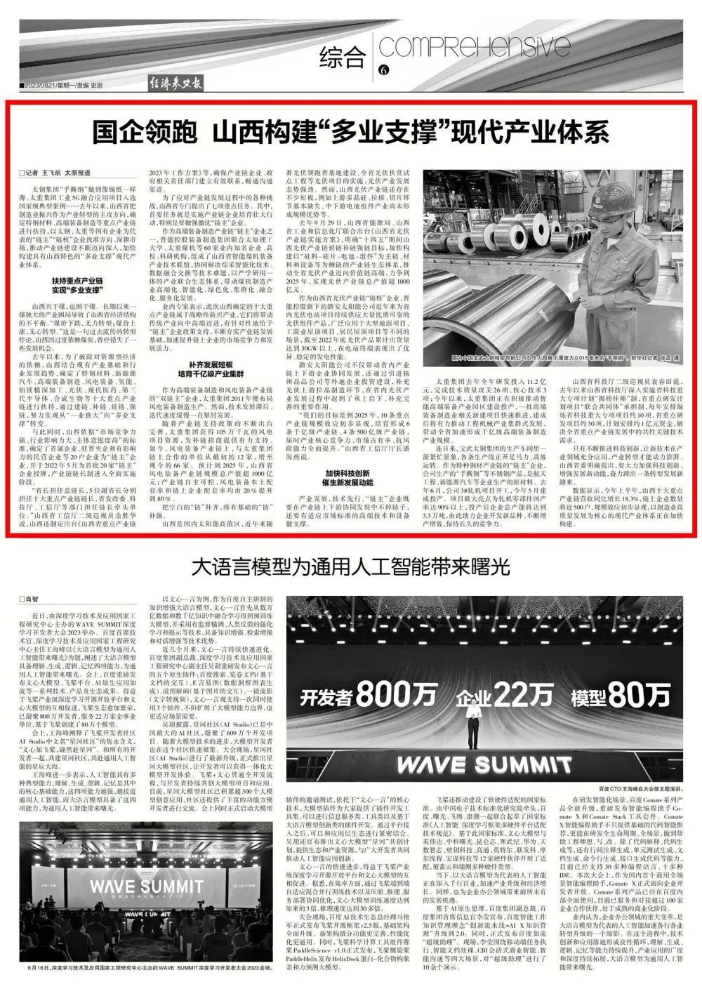 8月21日,新華社主管主辦的《經(jīng)濟(jì)參考報(bào)》刊發(fā)《國(guó)企領(lǐng)跑 山西構(gòu)建“多業(yè)支撐”現(xiàn)代產(chǎn)業(yè)體系》文章,深入報(bào)道太重轉(zhuǎn)型發(fā)展。太重集團(tuán)作為我省唯一的“雙鏈主”企業(yè),不斷提升公司在完善產(chǎn)業(yè)鏈、優(yōu)化供應(yīng)鏈、提升價(jià)值鏈中的引領(lǐng)作用,推動(dòng)鏈上企業(yè)高質(zhì)量發(fā)展。同時(shí),公司高度重視科技創(chuàng)新工作,以全國(guó)重點(diǎn)實(shí)驗(yàn)室為依托,在突破關(guān)鍵核心技術(shù)、促進(jìn)產(chǎn)業(yè)轉(zhuǎn)型升級(jí)的最前沿取得顯著成績(jī),為加快構(gòu)建具有山西特色的“多業(yè)支撐”現(xiàn)代產(chǎn)業(yè)體系貢獻(xiàn)太重力量。