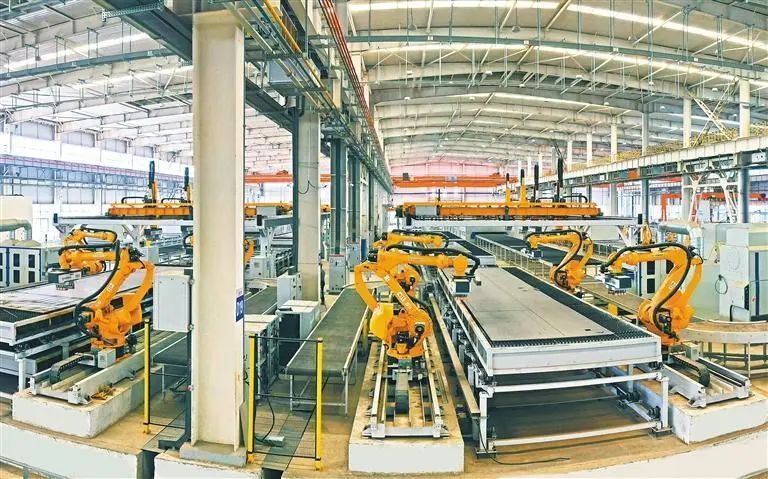 距離老廠區(qū)50公里外,山西轉(zhuǎn)型綜改示范區(qū)瀟河產(chǎn)業(yè)園區(qū)內(nèi),太重智能高端裝備產(chǎn)業(yè)園已拔地而起。在這里,太重所有裝備制造都能實(shí)現(xiàn)以工序?yàn)閱挝坏倪B續(xù)生產(chǎn)。各種機(jī)器人設(shè)備夜以繼日“上班”,智能導(dǎo)引搬運(yùn)車來回穿梭、自動(dòng)取送貨,一張鋼板經(jīng)過全流程生產(chǎn)線后,即可最大程度地切割出各類高質(zhì)量零部件,智能產(chǎn)線上“只見物,不見人”。