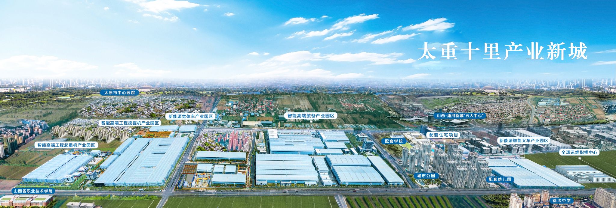 山西轉(zhuǎn)型綜改示范區(qū)瀟河產(chǎn)業(yè)園區(qū)內(nèi),“太重十里產(chǎn)業(yè)新城”拔地而起,從東向西眺望,新能源智能叉車產(chǎn)業(yè)園區(qū)、配套住宅項目、智能高端裝備產(chǎn)業(yè)園區(qū)、智能高端工程挖掘機產(chǎn)業(yè)園區(qū)、智能高端工程起重機產(chǎn)業(yè)園區(qū)連綿十里,宛如畫卷。